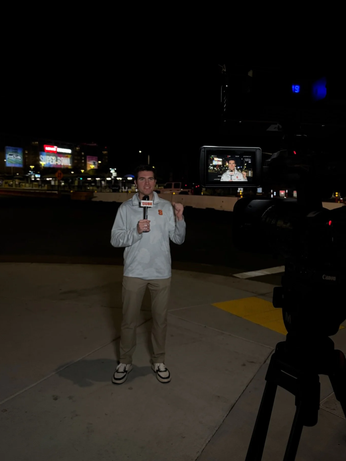 Nico’s gained industry experience through work with NBC Sports, contributing to coverage of the Paris Olympics, U.S. Open, FedEx St. Jude Championship, and the American Century Championship. He was also grateful to attend media row and cover Super Bowl 60 in San Francisco via the Newhouse Sports Media Center.